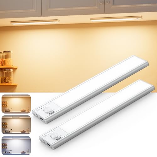 3 Couleurs Reglette Led Cuisine Super Lumineuses, Dimmable Lumiere Detecteur de Mouvement Interieur, USB-C Lampe de Placard, Longue Durée-Installation Facile Lampe Sans Fil pour Armoire Escalier