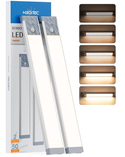 HIBOITEC Lampe de Placard, 50LED Dimmable Lampe Detecteur de Mouvement Interieur, USB-C Reglette LED Cuisine,sans Fil Rechargeable pour Armoire Cuisine Placard Escalier - 25,5 cm, Lumière Blanche