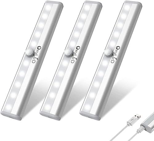 OxyLED Lampe Detecteur de Mouvement Interieur, 3 Pack Lumiere Led Lampe Rechargeable Auto ON/OFF Barre Cuisine Sous Meuble Sans Fil Reglette Led Cuisine pour le Cabinet Escalier Miroir de Courtoisie