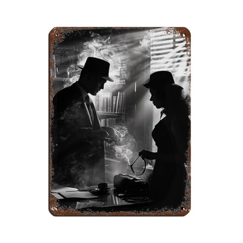 Plaque en métal vintage avec scène de détective de film noir pour pub, club, café, bar, maison, décoration murale 30 x 40 cm