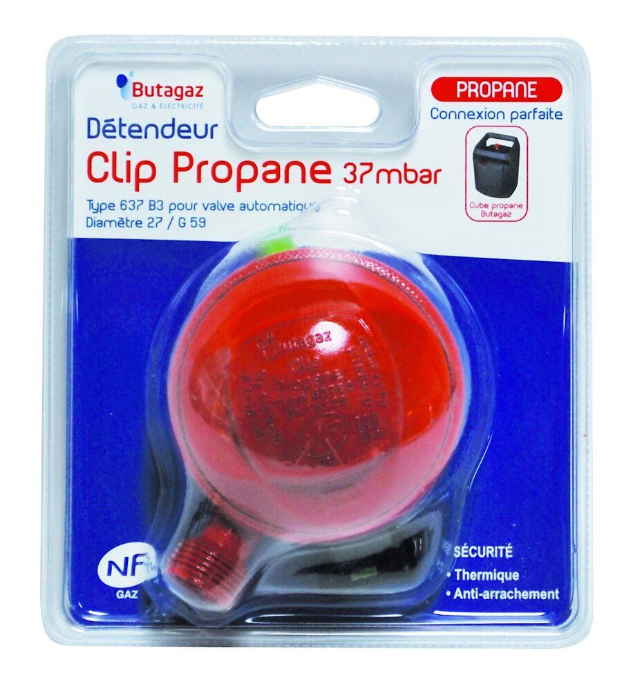 Détendeur pour gaz propane 37 millibars pour bouteilles cube, BUTAGAZ
