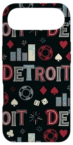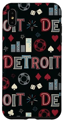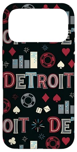 Illustration de répétition Fluide des icônes de la soirée de Jeux du Casino Detroit Skyline Coque pour iPhone 17 Pro Max