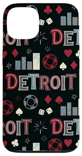 Illustration de répétition Fluide des icônes de la soirée de Jeux du Casino Detroit Skyline Coque pour iPhone 13