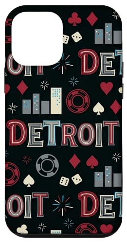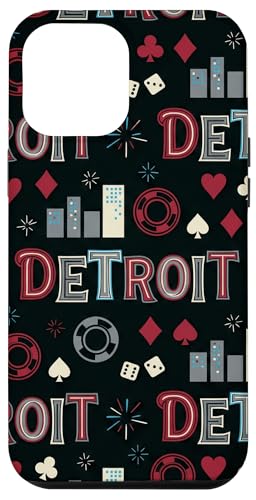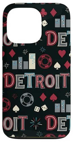 Illustration de répétition Fluide des icônes de la soirée de Jeux du Casino Detroit Skyline Coque pour iPhone 13 Pro Max