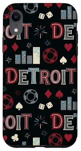 Illustration de répétition Fluide des icônes de la soirée de Jeux du Casino Detroit Skyline Coque pour iPhone XR