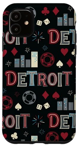 Illustration de répétition Fluide des icônes de la soirée de Jeux du Casino Detroit Skyline Coque pour iPhone 11