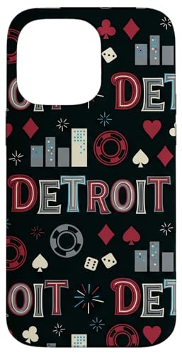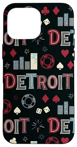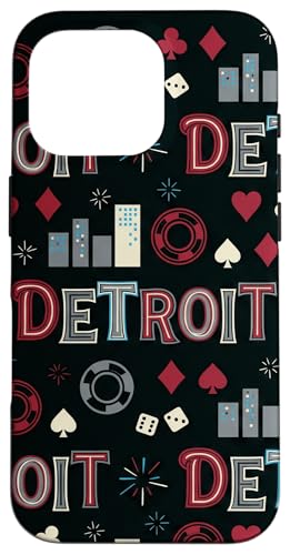 Illustration de répétition Fluide des icônes de la soirée de Jeux du Casino Detroit Skyline Coque pour iPhone 16 Pro Max
