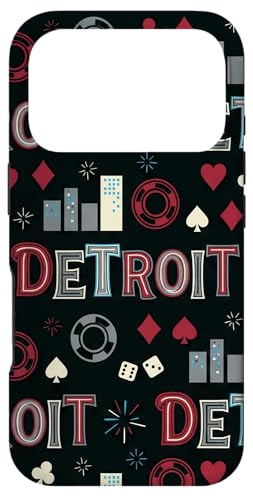 Illustration de répétition Fluide des icônes de la soirée de Jeux du Casino Detroit Skyline Coque pour iPhone 17 Pro