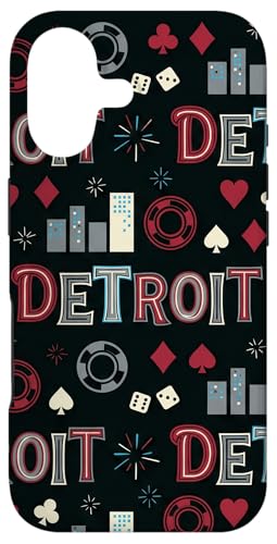 Illustration de répétition Fluide des icônes de la soirée de Jeux du Casino Detroit Skyline Coque pour iPhone 16