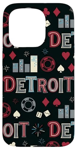 Illustration de répétition Fluide des icônes de la soirée de Jeux du Casino Detroit Skyline Coque pour iPhone 16 Pro