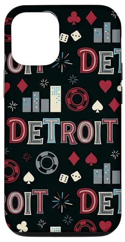Illustration de répétition Fluide des icônes de la soirée de Jeux du Casino Detroit Skyline Coque pour iPhone 12/12 Pro