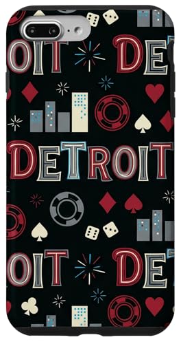 Illustration de répétition Fluide des icônes de la soirée de Jeux du Casino Detroit Skyline Coque pour iPhone 7 Plus/8 Plus
