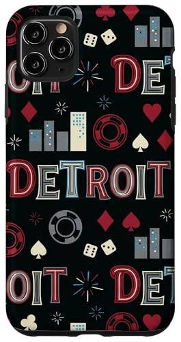 Illustration de répétition Fluide des icônes de la soirée de Jeux du Casino Detroit Skyline Coque pour iPhone 11 Pro