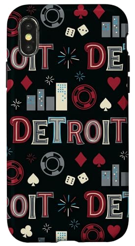 Illustration de répétition Fluide des icônes de la soirée de Jeux du Casino Detroit Skyline Coque pour iPhone X/XS