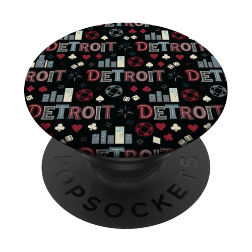 Illustration de répétition Fluide des icônes de la soirée de Jeux du Casino Detroit Skyline PopSockets PopGrip Adhésif