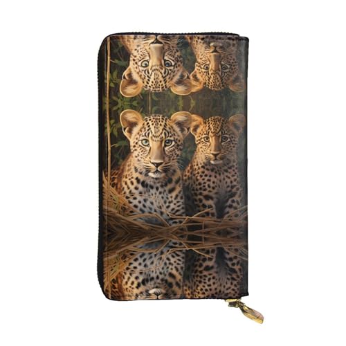 GGNKDL Portefeuille long en cuir avec fermeture éclair pour femme Motif deux frères léopard