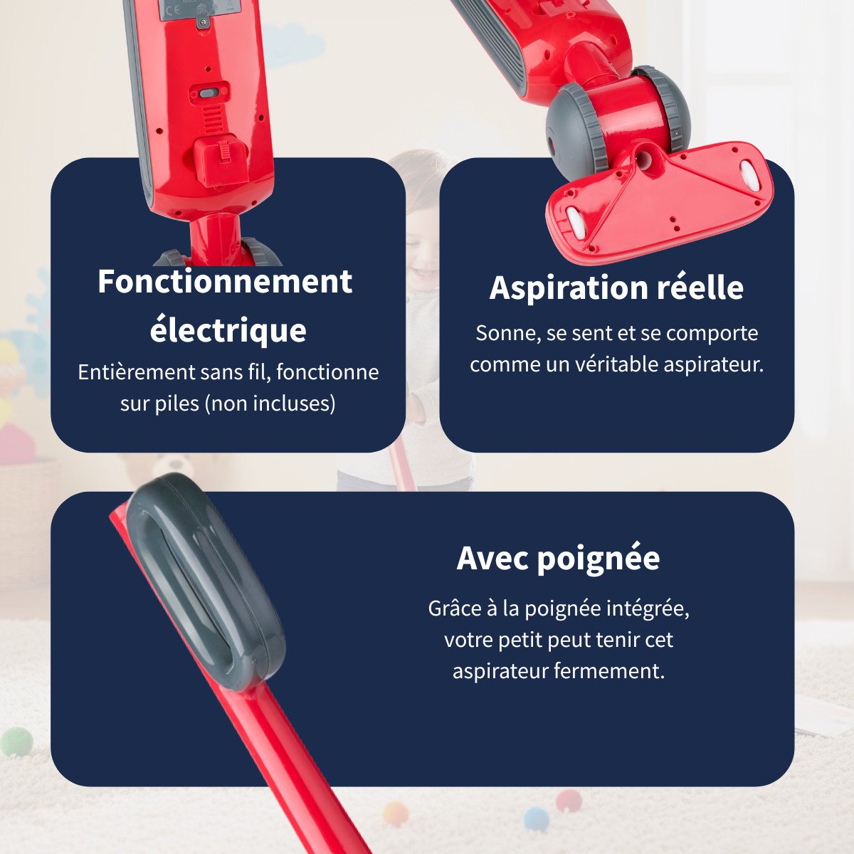Dirt Devil Aspirateur Jouet 3-en-1 - Vacuum Cleaner avec 2 Accessoires - Fonction d'Aspiration et Sons Réalistes - pour Garçons et Filles à partir de 3 Ans - Rouge/Gris