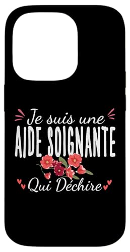 Je suis Une Aide Soignante Qui Déchire avec Fleurs Coque pour iPhone 14 Pro