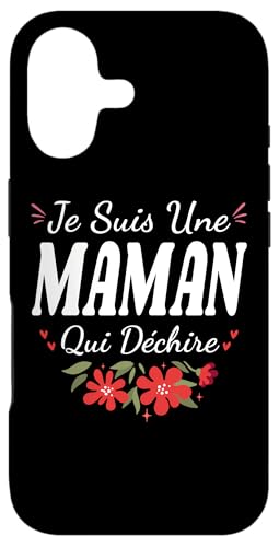 Je suis Une Maman Qui Déchire avec Fleurs Coque pour iPhone 16