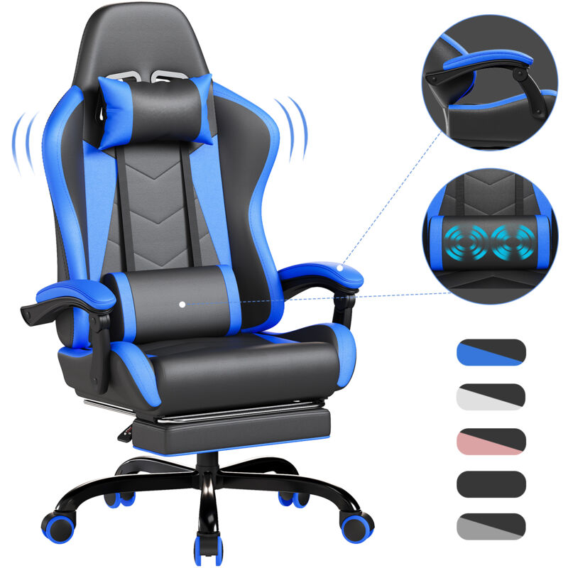 Devoko Chaise Gaming Ergonomique avec Massage Lombaire, Siège Gamer Inclinable 135°, Repose-Pieds, Appui-Tête Réglable, Fauteuil Gaming Adulte en