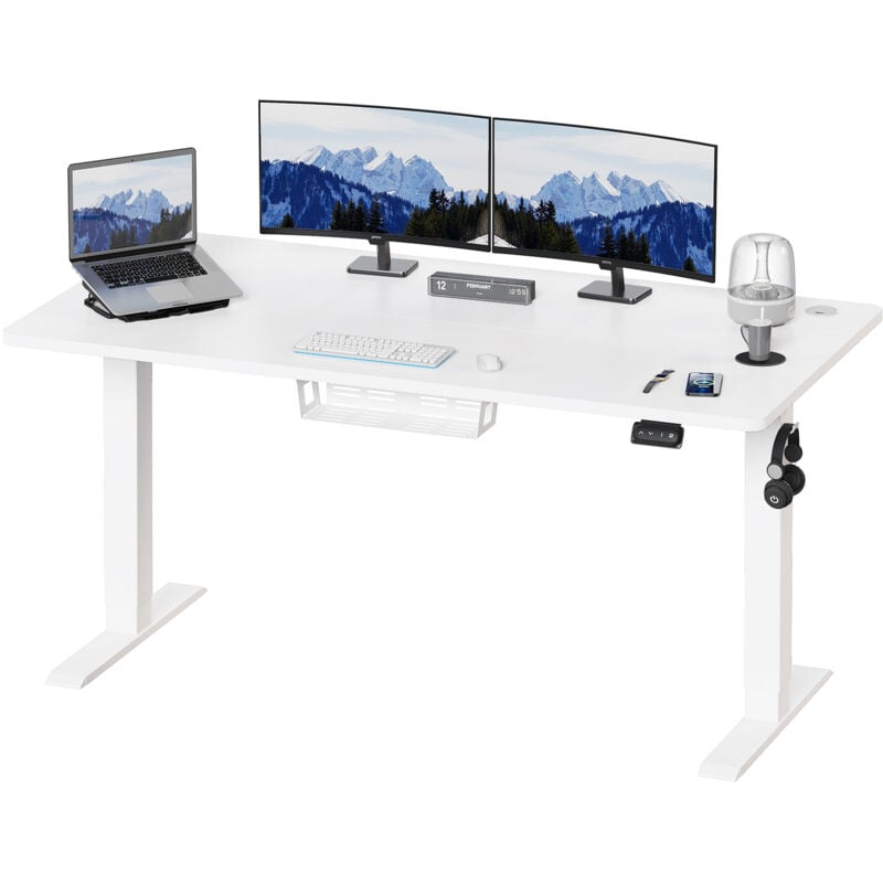 Devoko - Bureau réglable en hauteur 140 x 60 cm avec prise usb, bureau électrique réglable en hauteur avec fonction mémoire, 73-118 cm, gris