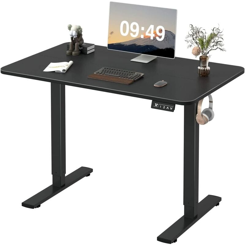 Devoko - 120 x 60 cm Bureau debout réglable en hauteur, bureau assis-debout, bureau d'ordinateur avec fonction mémoire, structure métallique robuste,