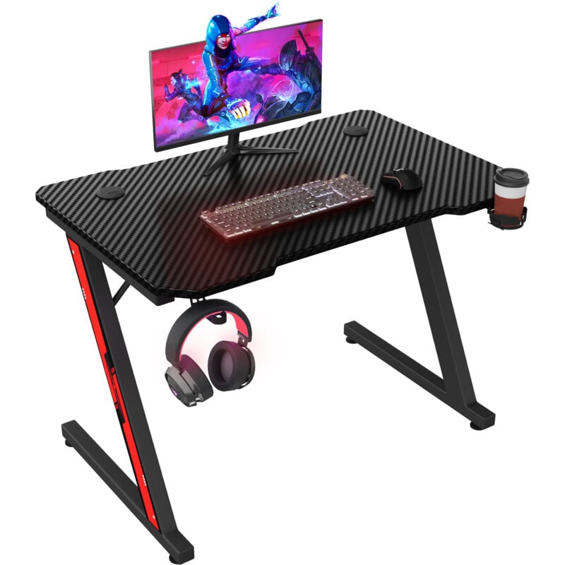 Devoko – Bureau gamer 120x60cm – Structure en Z en fibre de carbone – Charge 60kg – Lumières RVB avec télécommande – Accessoires inclus