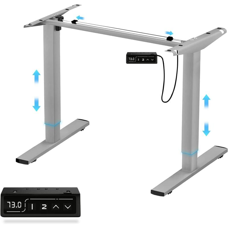 Devoko – Cadre bureau assis debout réglable – Hauteur 71-121 cm – Charge 80 kg – Panneau avec 3 claviers à mémoire – Acier robuste gris