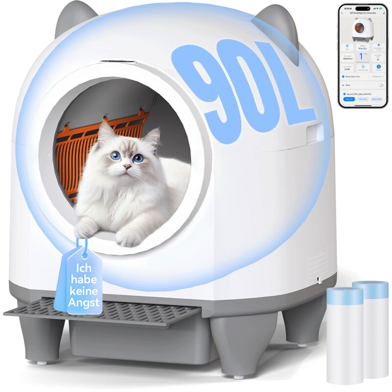 Devoko Litière Chat Autonettoyante 90L Bac XXL - Contrôlable par Application, avec Poubelle de 8 litres et Désodorisant Solide