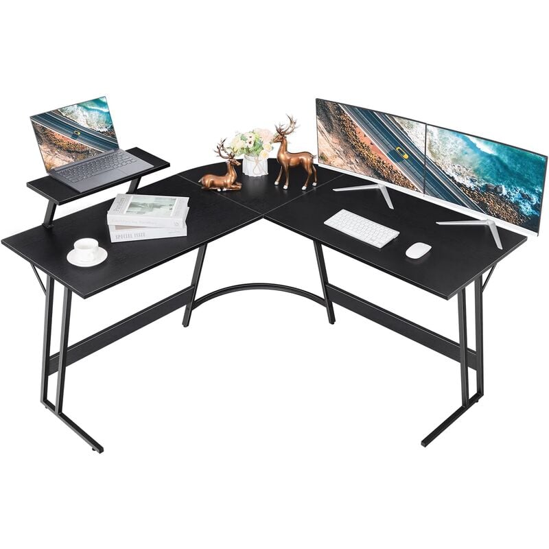 Devoko - Bureau d'angle Angle en forme de l avec support à deux couches acier ergonomique bois matériel noir 130cm