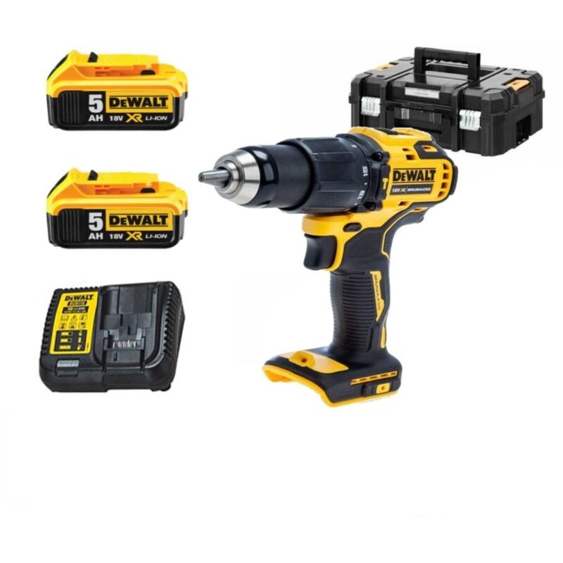 DCD709P2T-QW Perceuse à percussion sans fil xr 18V 65Nm 2 vitesses - 2 x 5.0 Ah Batterie, chargeur en coffret - Dewalt