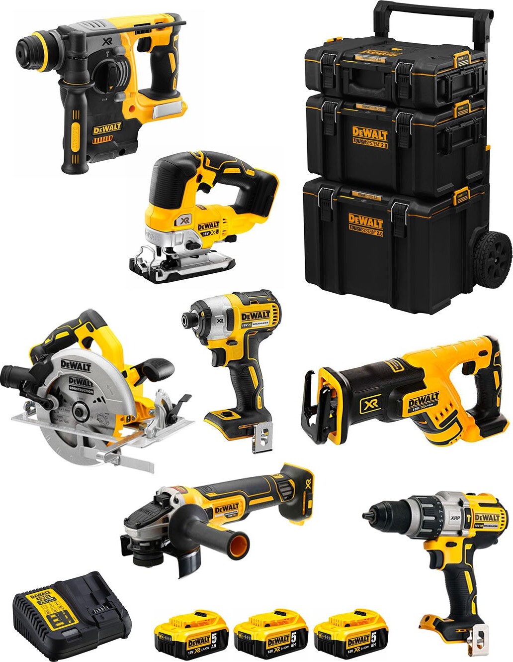 Kit DeWALT DWK601T (DCD996 + DCH273 + DCG405 + DCF887 + DCS334 + DCS570 + 3 x 5.0 Ah + DCB115 + 4 x TSTAK VI)