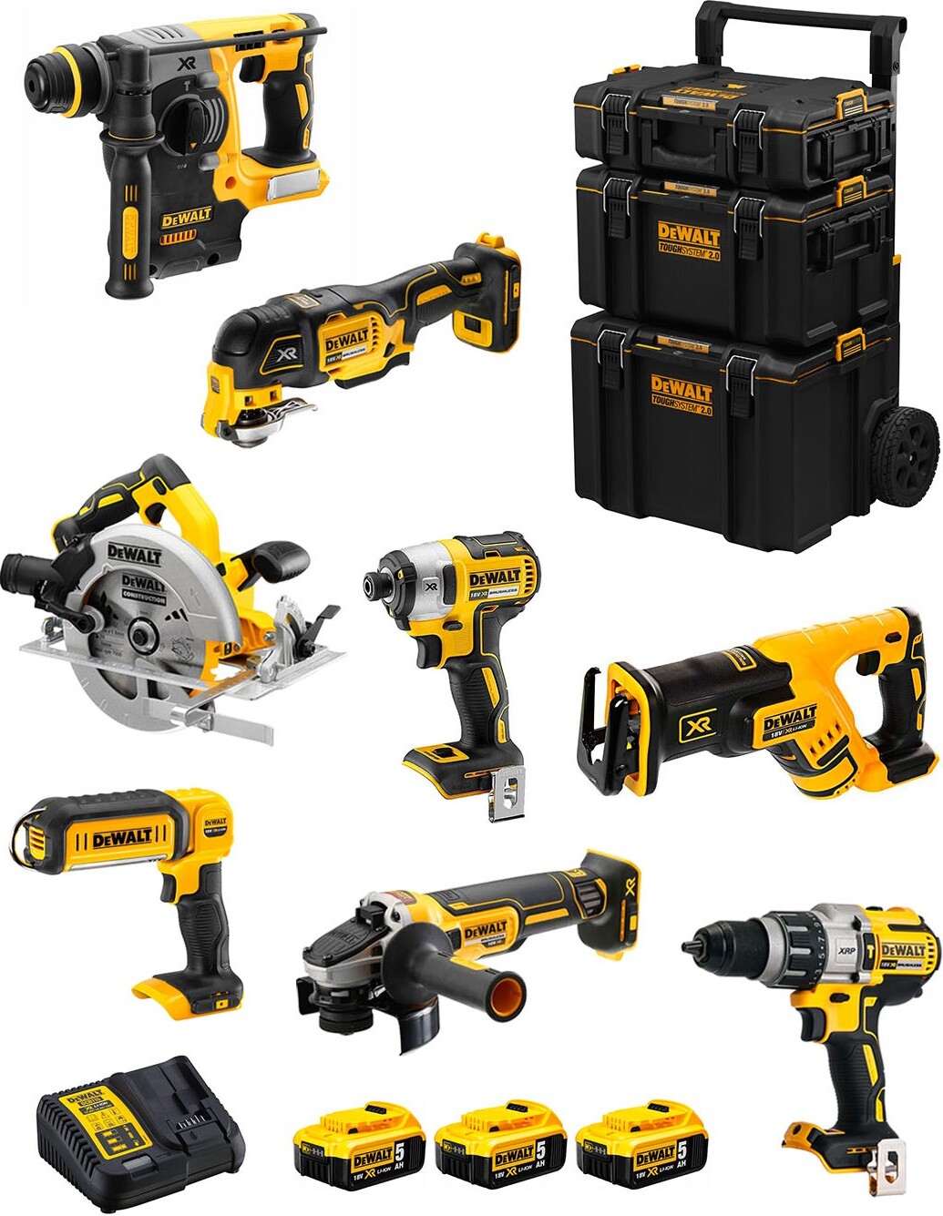 Kit DeWALT DWK805T (DCD996 + DCH273 + DCG405 + DCF887 + DCS334 + DCS367 + DCS570 + DCL050 + 3 x 5.0 Ah + DCB115 + 4 x TSTAK VI)