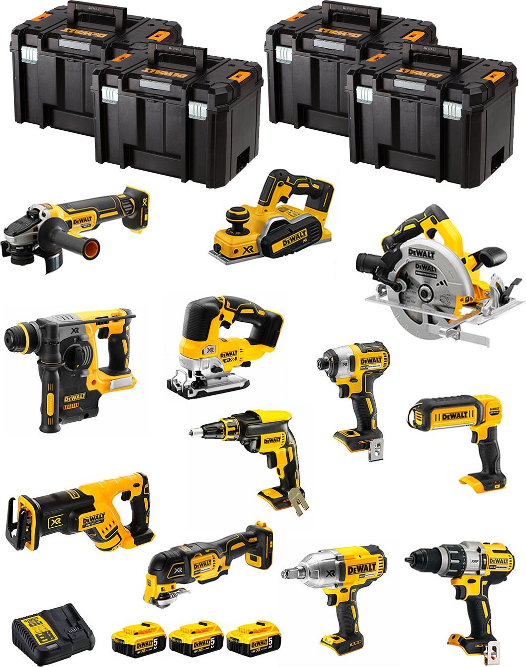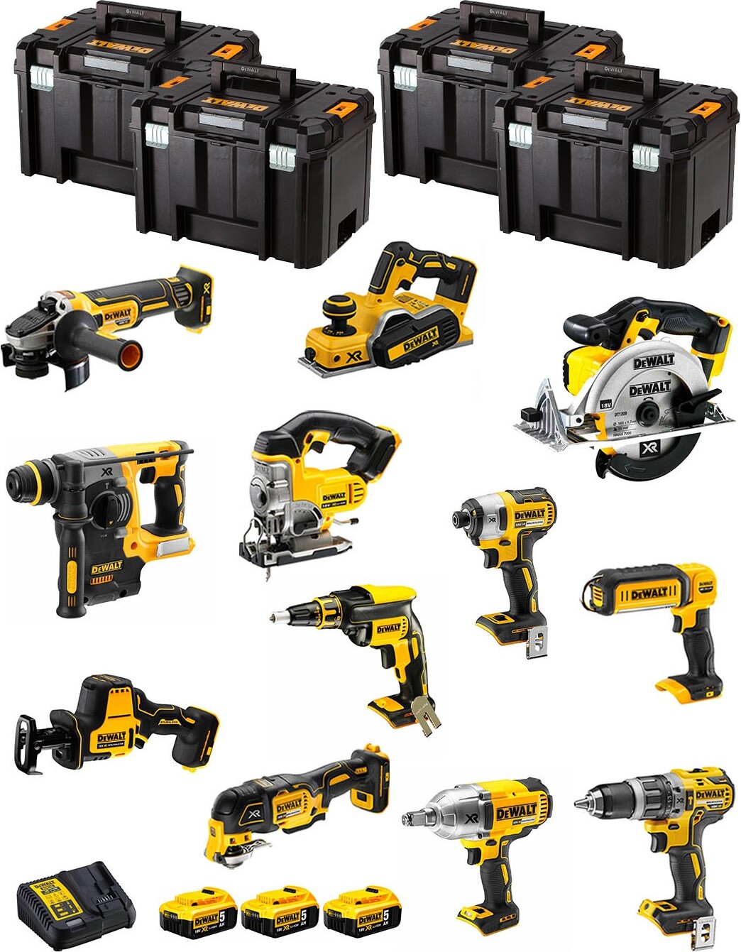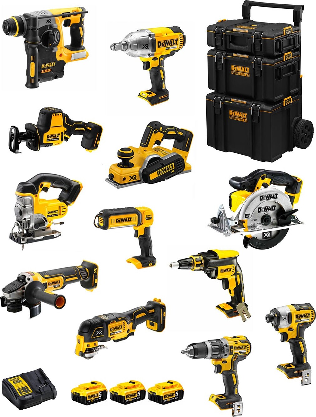 DeWALT Kit DWK1203T (DCD996+DCH273+DCG405+DCF887+DCF899H+DCS334+DCS570+ DCS355+DCP580+DCS367+DCL050+DCF620+3x5,0Ah+DCB115+4xTVI)