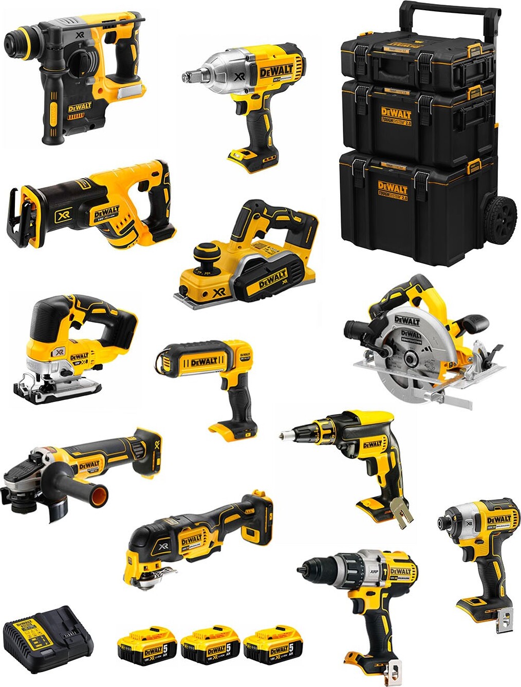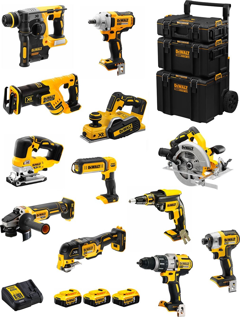 DeWALT Kit DWK1203 (DCD996+DCH273+DCG405+DCF887+DCF899H+DCS334+DCS570+ DCS355+DCP580+DCS367+DCL050+DCF620+3x50Ah+DCB115+Caddy)