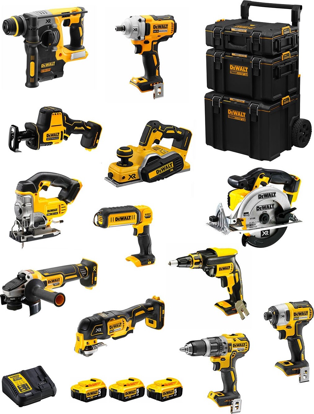 DeWALT Kit DWK1201T (DCD996+DCH273+DCG405+DCF887+DCF894+DCS334+DCS570+ DCS355+DCP580+DCS367+DCL050+DCF620+3x5,0Ah+DCB115)