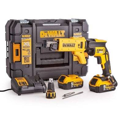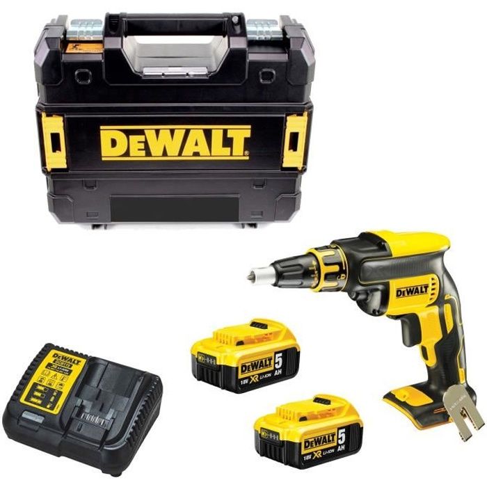 Dewalt Visseuse plaques de plâtre DEWALT DCF620P2K + Chargeur pour vis à bande 18 V 2 x 5.0 Ah Li-ion moteur Brushless