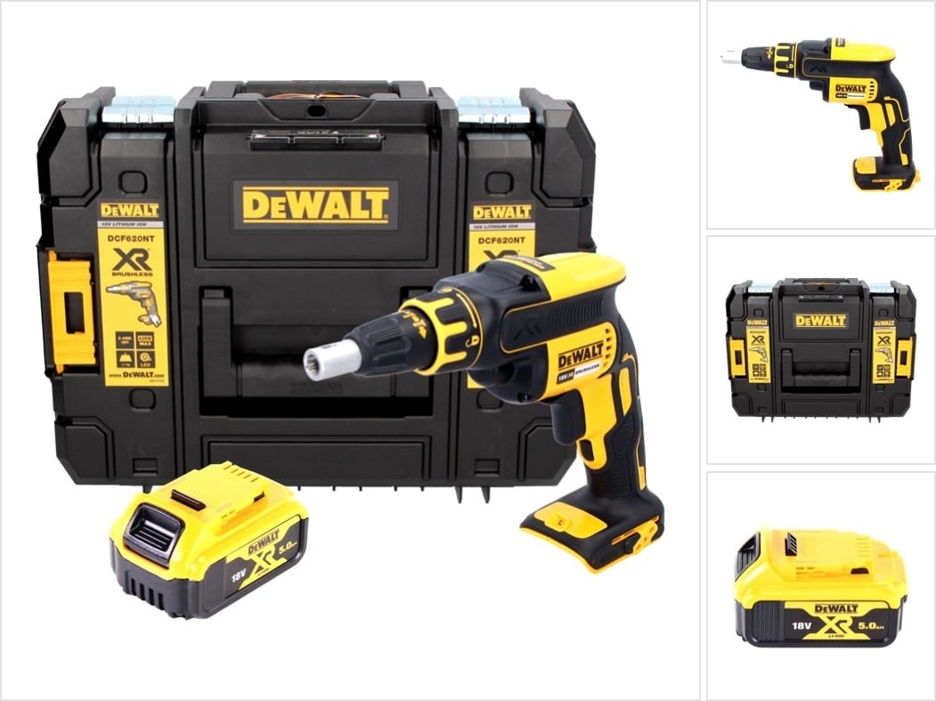 DeWalt DCF 620 P1T Visseuse pour cloisons sèches sans fil 18 V 30 Nm Brushless + 1x batterie 5,0 Ah + chargeur + TSTAK