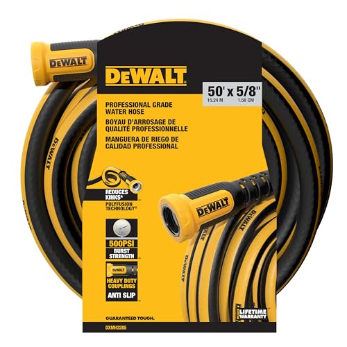 DEWALT DCMH3285 Tuyau d'arrosage robuste de qualité professionnelle 15,2 m x 1,6 cm pour jardin, jaune, noir