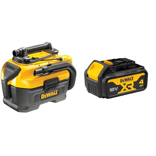 DeWalt - Aspirateur de Chantier Classe L - DCV584L-QW & Batterie XR 18V 4 Ah Li-ION - DCB182-XJ - Compatible avec Tous Les Outils XR 18V Bricolage et Jardin Témoin de Charge Lumineux