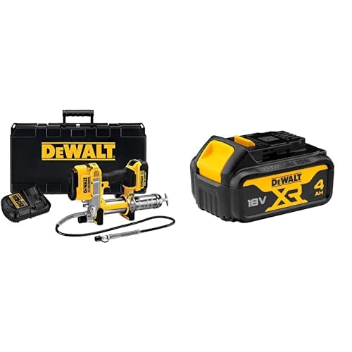 DEWALT - Pompe A Graisse Electrique Sur Batterie XR 18V 4Ah Li-Ion - DCGG571M1-QW - Sans Fil & Batterie XR 18V 4 Ah Li-Ion - Compatible Avec Tous Les Outils XR 18V Bricolage et Jardin