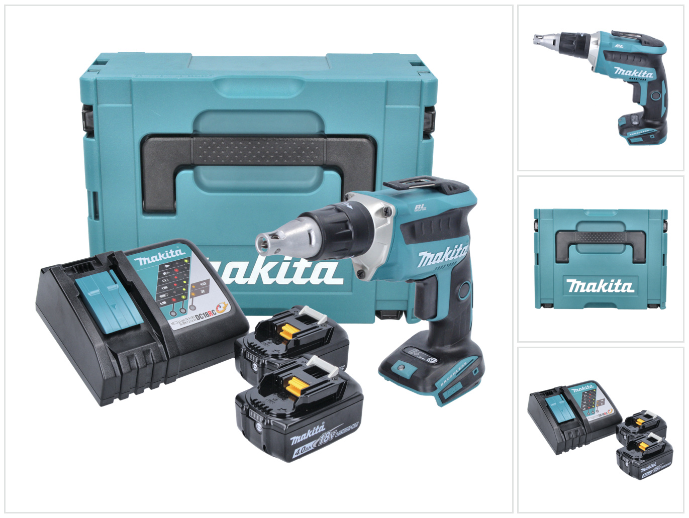 Makita DFS 452 RMJ Visseuse plaque de plâtre sans fil, sans balai, 18V + 2x Batteries 4,0 Ah + Chargeur + Makpac