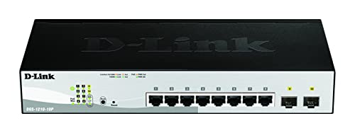 D-Link DGS-1210-10MP/E Switch Smart+ 8 Ports Gigabit PoE/PoE+ + 2 Ports SFP - Budget PoE 130W - Switch ONVIFF - Idéal pour Entreprise Administration et Réseaux Gérés - Cordon d'alimentation UE