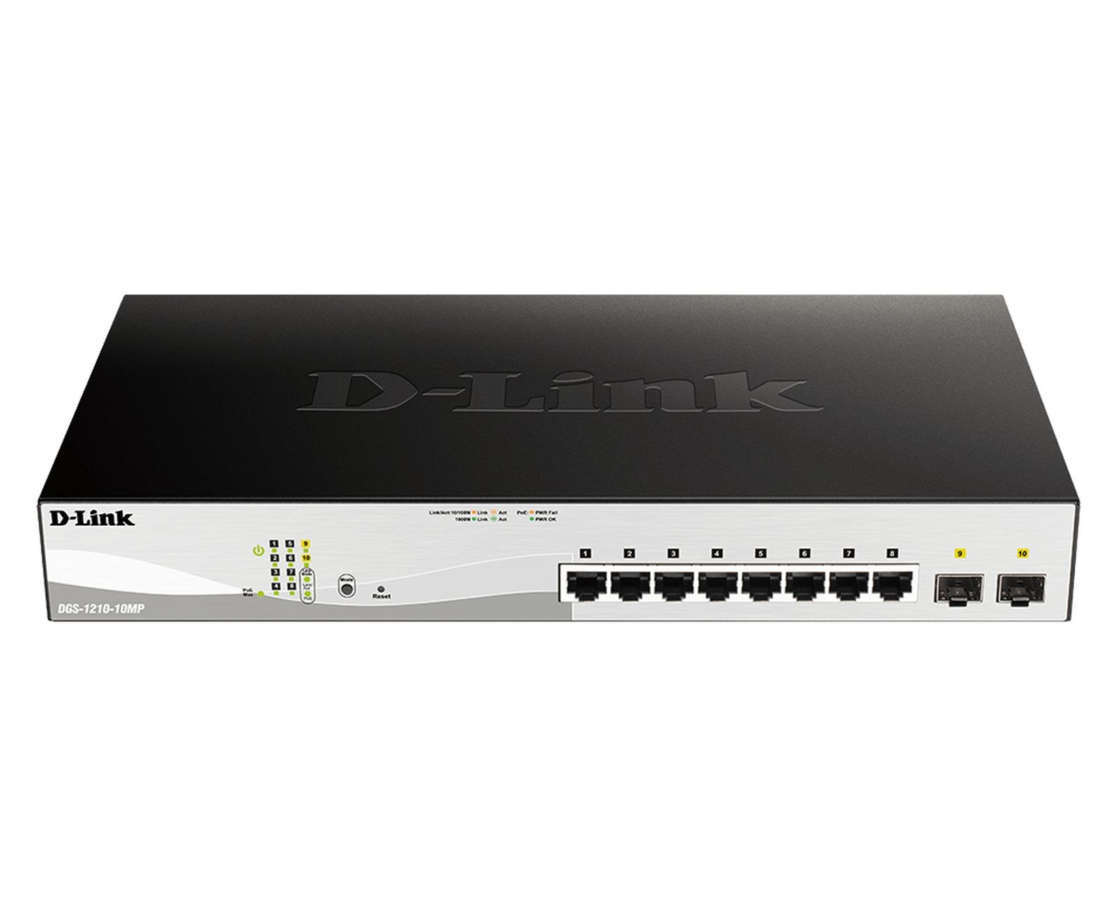 D-Link DGS 1210-10MP - Commutateur - C2+ - intelligent - 8 x 10/100/1000 (PoE+) + 2 x Gigabit SFP - de bureau, Montable sur rack - PoE+ (130 W)