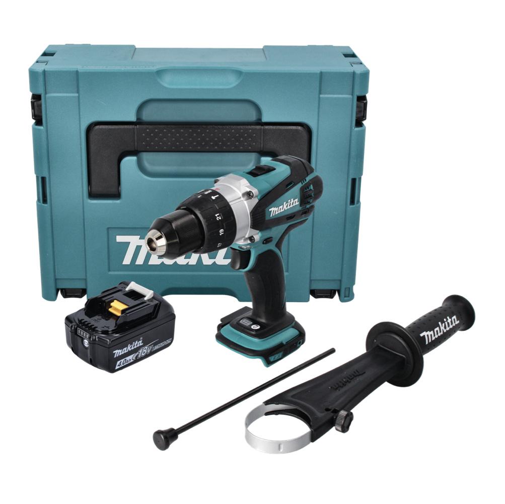 Makita DHP 458 M1J Perceuse-visseuse à percussion sans fil 18 V 91 Nm + 1x batterie 4,0 Ah + Makpac - sans chargeur