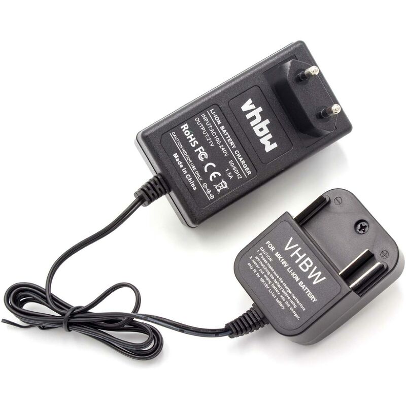 vhbw Chargeur compatible avec Makita DHP459RF3J, DHP459RMJ, DHP459, DHP459RTJ, DHP458Z, DHP458ZJ, DHP458RTJ batteries Li-ion d'outils, 21V