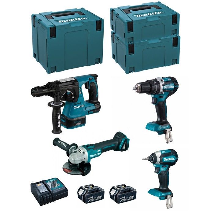 Ensemble de 4 machines 18v li-ion makita dlx4109tj 5 ah (ddf484 + dtd154 + dhr243 + dtm51) DLX4109TJ