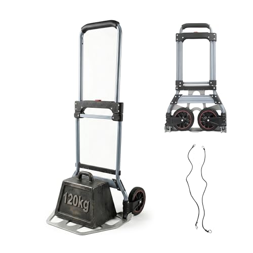 Diable Pliable, Chariot Robuste avec 6 Roues et 2 Cordes élastiques, Pliable et idéal pour Les Bagages, Les Voyages, Les déménagements, Le Shopping, Le Bureau, Peut Supporter jusqu'à 226,8 kg, Facile