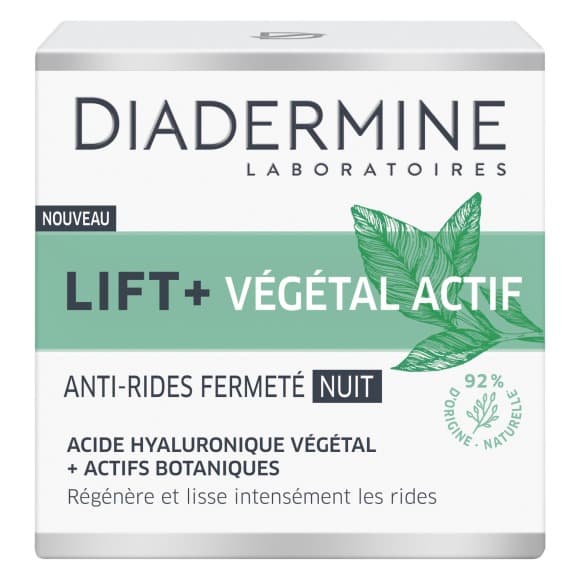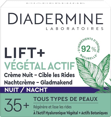 Diadermine - Lift+ Végétal Actif - Crème Visage de Nuit - Soin Anti-Rides Fermeté - Acide Hyaluronique Végétal et Actifs Botaniques - Régénère et Lisse Intensément les Rides - Pot de 50 ml