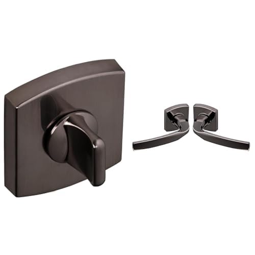 Vachette - Jeu de Rosaces Carrées MUZE/SCULT/ARTIS + Poignée de Porte MUZE - à Condamnation Porte WC et SDB + Béquille et Rosace Carrée Solidarisées Bec de Cane - en Diamant Noir - Garantie 10 Ans